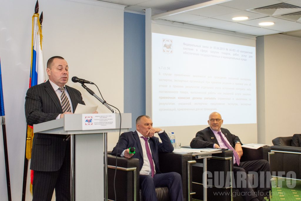 Далее Первый вице-президент перешёл к применению национальных стандартов и сертификатов соответствия в закупках. «Если мы хотим реально повысить качество охранных услуг, без использования ГОСТов и сертификатов соответствия не обойтись, — заявил он. — Причём это не требует дополнительных затрат ни от контролёров, ни от заказчиков». Он пояснил, что при описании объекта закупки в техническом задании целесообразно применять характеристики, предусмотренные национальными стандартами.